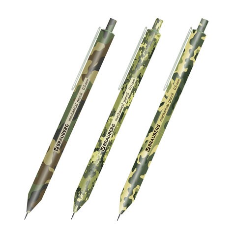 Карандаш механический 0,5 мм, BRAUBERG SOFT PRINT MILITARY, HB, корпус soft-touch ассорти, 181959