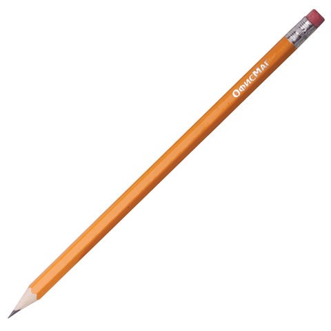 Карандаши чернографитные простые с ластиком HB, ВЫГОДНАЯ УПАКОВКА КОМПЛЕКТ 12 штук, ОФИСМАГ, 180638