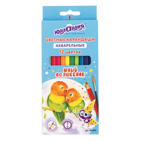Карандаши цветные акварельные ЮНЛАНДИЯ "ЮНЫЙ ВОЛШЕБНИК", 12 цветов, шестигранные, грифель 3 мм, натуральное дерево, 181402