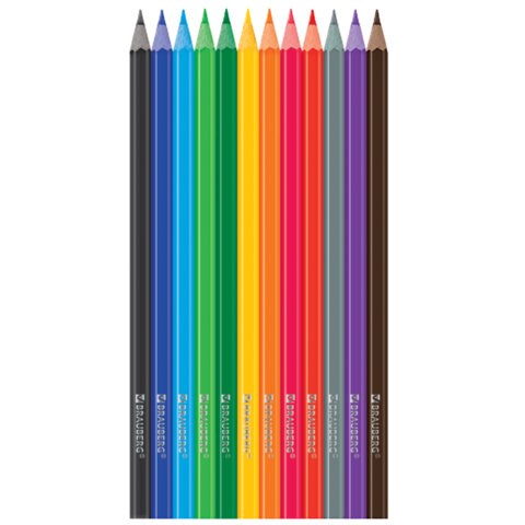 Карандаши цветные BRAUBERG, 12 цветов, цветной корпус, упаковка ПВХ-бокс, шестигранные, 182067