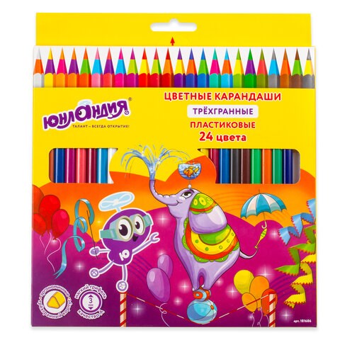 Карандаши цветные ЮНЛАНДИЯ "КАРНАВАЛ", 24 цвета, трехгранные, грифель 3 мм, 181686