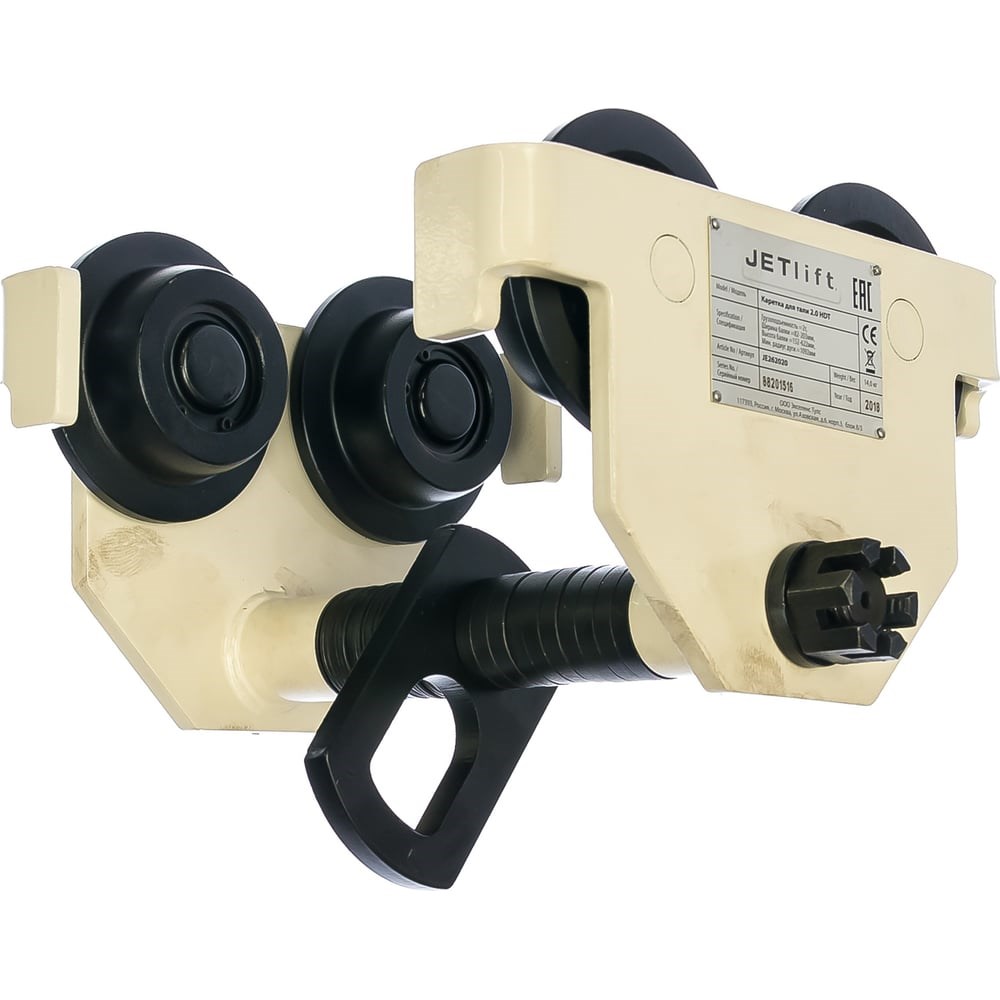 Каретка для тали JET 2 HDT 262020 перемещает тали с грузом или без него вдоль несущей балки. Каретка перемещается в горизонтальном направлении по монорельсовому пути. Стальная конструкция окрашена краской для защиты от коррозии. Приспособление не требует внешнего источника питания.