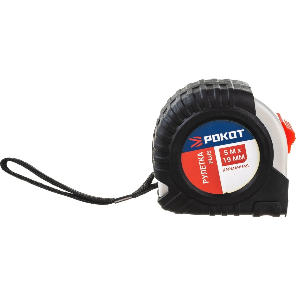Рулетка РОКОТ карманная PLUS, 5мх19мм 658-041 подходит для измерительных работ любой сложности. Имеется петля для ношения на запястье. Модель обладает прочным корпусом и контрастной лентой. Изделие сохраняет высокую точность измерений и обеспечивает быстрое сматывание ленты.