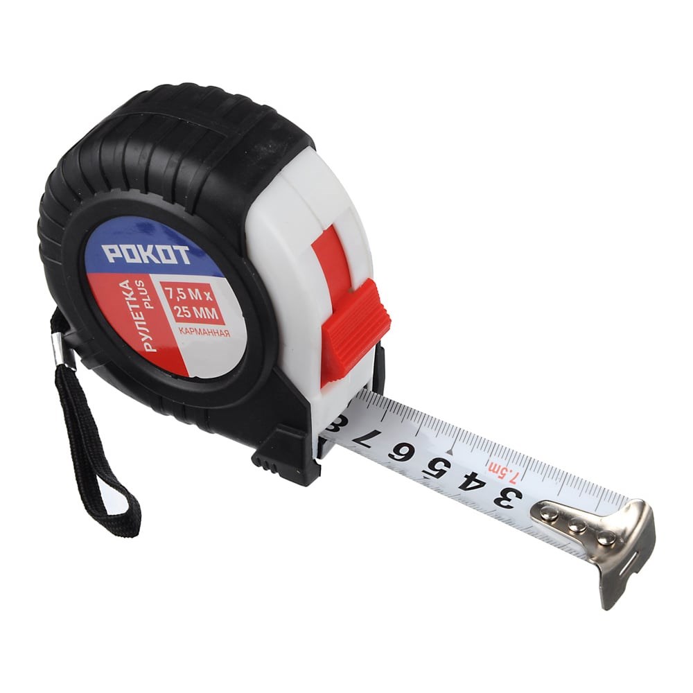 Карманная рулетка РОКОТ PLUS, 7,5мх25мм 658-043 подходит для определения расстояний и длины деталей. Металлическая лента окрашена, имеет четкую разметку. Зацеп выполнено ровно под углом 90 градусов, что исключает его соскальзывание в процессе измерений. Механизм сматывания имеет увеличенный ресурс.