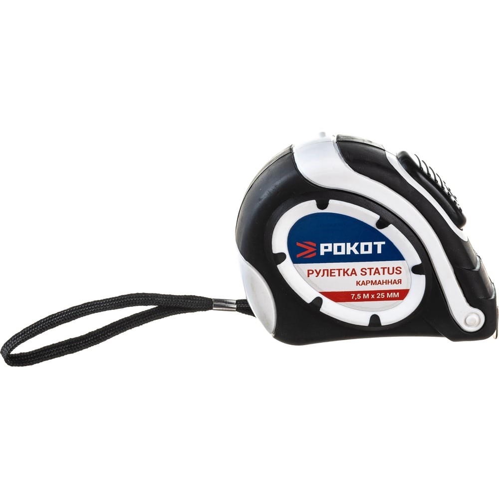 Карманная рулетка РОКОТ STATUS автостоп, 7,5мх25мм 658-011 подходит для определения расстояний и длины деталей. Металлическая лента окрашена, имеет четкую разметку. Зацеп выполнено ровно под углом 90 градусов, что исключает его соскальзывание в процессе измерений. Механизм сматывания имеет увеличенный ресурс.