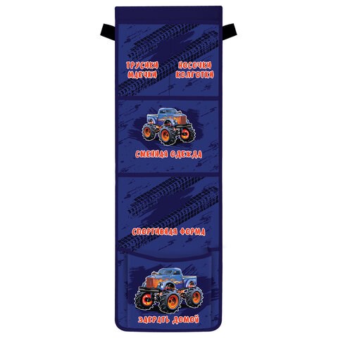 Кармашки-органайзер в шкафчик для детского сада ЮНЛАНДИЯ, увеличенный размер, 26х80 см, "Monster truck", 273282