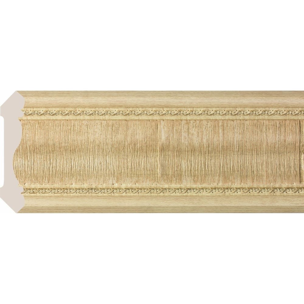 Карниз Cosca 174-5 интерьерный багет, 60 мм, ясень золотистый СПБ016768 служит для декорирования стыка потолка и стены. Коллекция "Венский лес" - это широкий спектр оттенков различных пород дерева, от светлого до насыщенных темных. Поперечная структура имитирует благородный шпон. Такая структура естественным путем маскирует места соединения профилей.