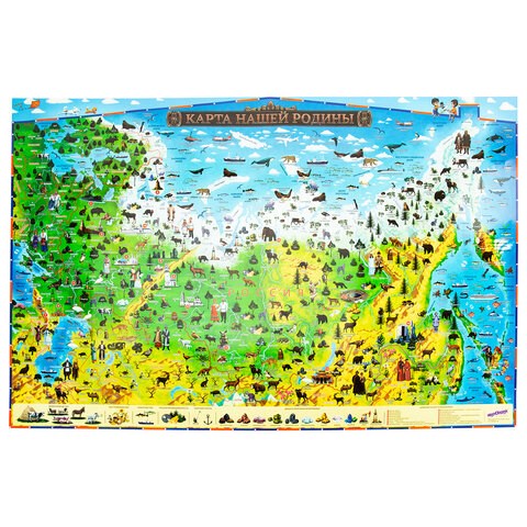 Карта России "Наша родина" 101х69 см, с ламинацией, интерактивная, в тубусе, ЮНЛАНДИЯ, 112374