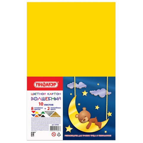 Картон цветной А4 немелованный (матовый), ВОЛШЕБНЫЙ, 10 листов, 10 цветов, ПИФАГОР, 200х283 мм, 127052
