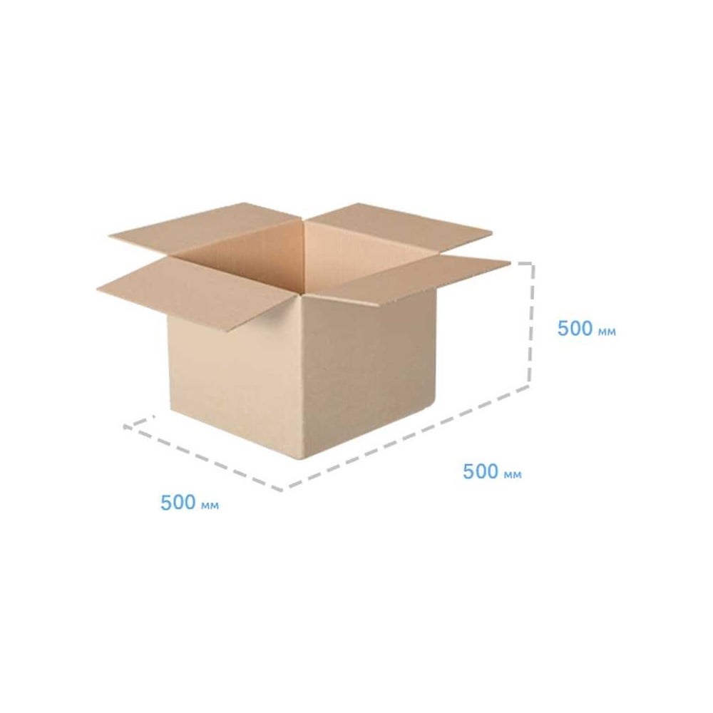 Четырёхклапанная коробка размером 500x500x500 мм из гофрированного картона бурого цвета, марки Т-23 профиль "С". Коробки поставляются в разобранном виде.