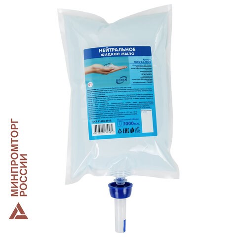 Картридж с жидким мылом одноразовый (Система S1) "Нейтральное", синее, 1 л, KEMAN, 100024-1000