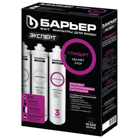Картриджи сменные БАРЬЕР "Эксперт Стандарт", для холодной воды, 3 ступени, ресурс 10000 л, КОМПЛЕКТ 3 шт., Р213Р00