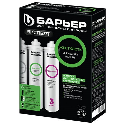 Картриджи сменные БАРЬЕР "Эксперт Жесткость", для холодной воды, 3 ступени, ресурс 10000 л, комплект 3 шт., Р223Р00