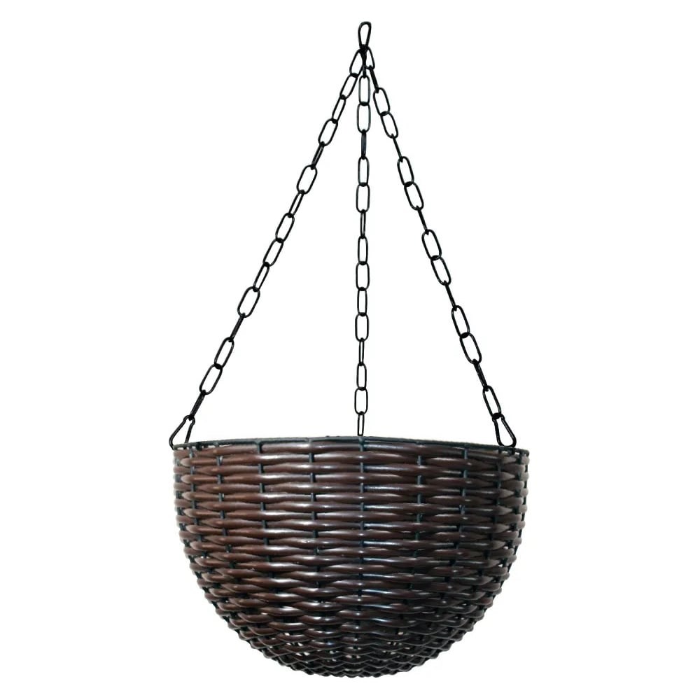 Кашпо из экоротанга - оптимальное решения для декорирования дома и сада живыми цветами. Кашпо можно разместить у входной зоны дома, или в беседке, веранде, да где угодно, оно всегда смотрится оригинально и в доме, и на улице. Одно из ключевых преимуществ нашего кашпо, это его долговечность - полимерный ротанг не подвержен воздействию внешней среды, не выгорает, не деформируется, легко моется, не подвержен гниению. Кашпо состоит из стальных прутьев, оплетенных полимерным ротангом, и снабжено системой подвеса. Металлический каркас и цепи окрашены атмосферостойкой краской. Система подвеса надежна и легко выдерживает грунт с растением. Максимальная нагрузка: 6 кг