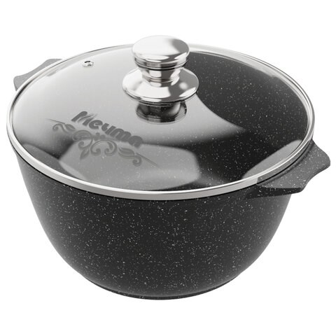 Кастрюля 4 л с жаропрочной крышкой 24 см, антипригарное покрытие, МЕЧТА "Гранит Black", 44802