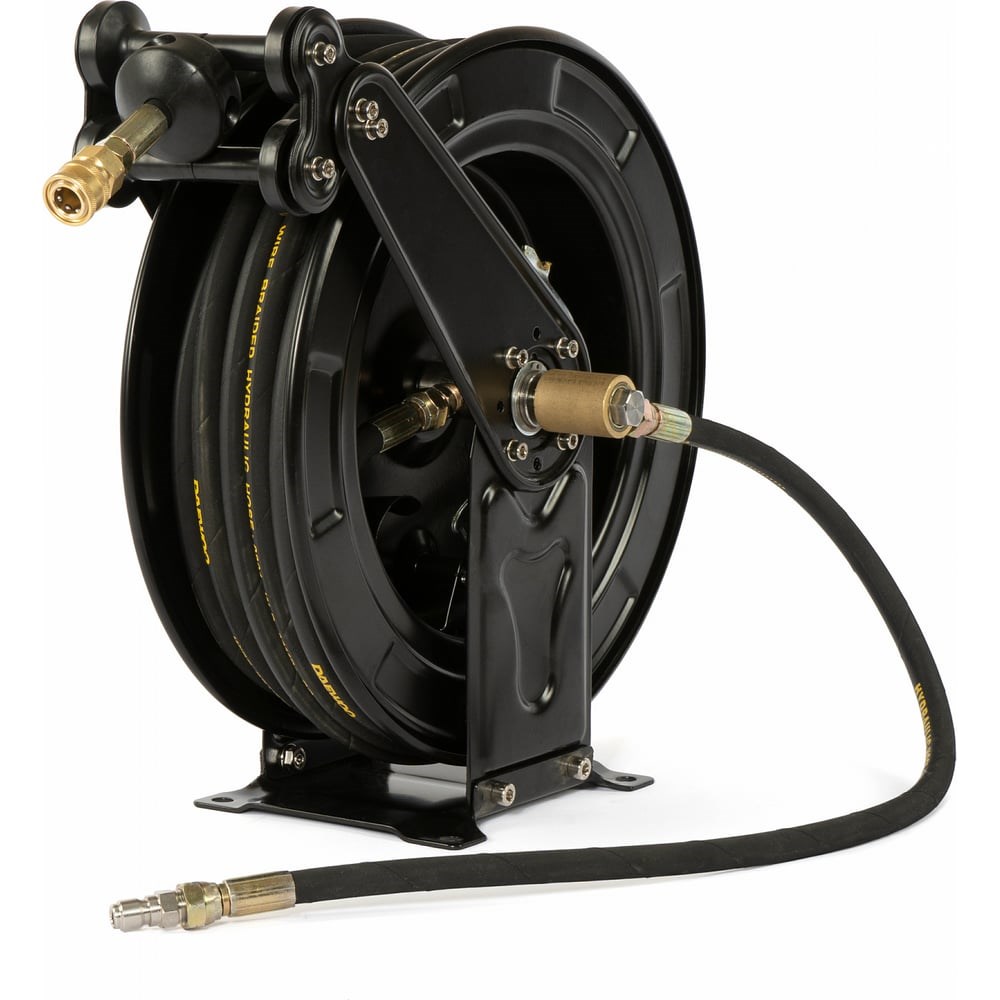 Катушка со шлангом DAEWOO DHR 20 изготовлена из качественных материалов. Оснащена армированным шлангом высокого давления. Стопорный механизм позволяет фиксировать шланг через каждый оборот барабана.Внутренний диаметр составляет 8 мм, внешний - 17мм. Быстросъемный коннектор 3/8”.