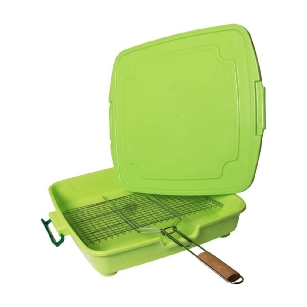 Переносной контейнер-мойка предназначен для правильного ухода за решеткой-гриль и шампурами длиной до 60 см, для мытья противней, решёток духовки и других крупногабаритных и сложных в уходе предметов (размером до 45х45 см). Контейнер имеет специальную выемку, соответствующую размерам ручки решетки, а также сливное отверстие для грязной воды. Удобно использовать для хранения и транспортировки решетки и принадлежностей для пикника. Имеет крышку, которую можно использовать в качестве подноса. Материал - морозостойкий пищевой полипропилен, который выдерживает воздействие даже агрессивных моющих средств, не впитывает запахи и легко моется. Входит в стандартный шкаф глубиной 60 см.