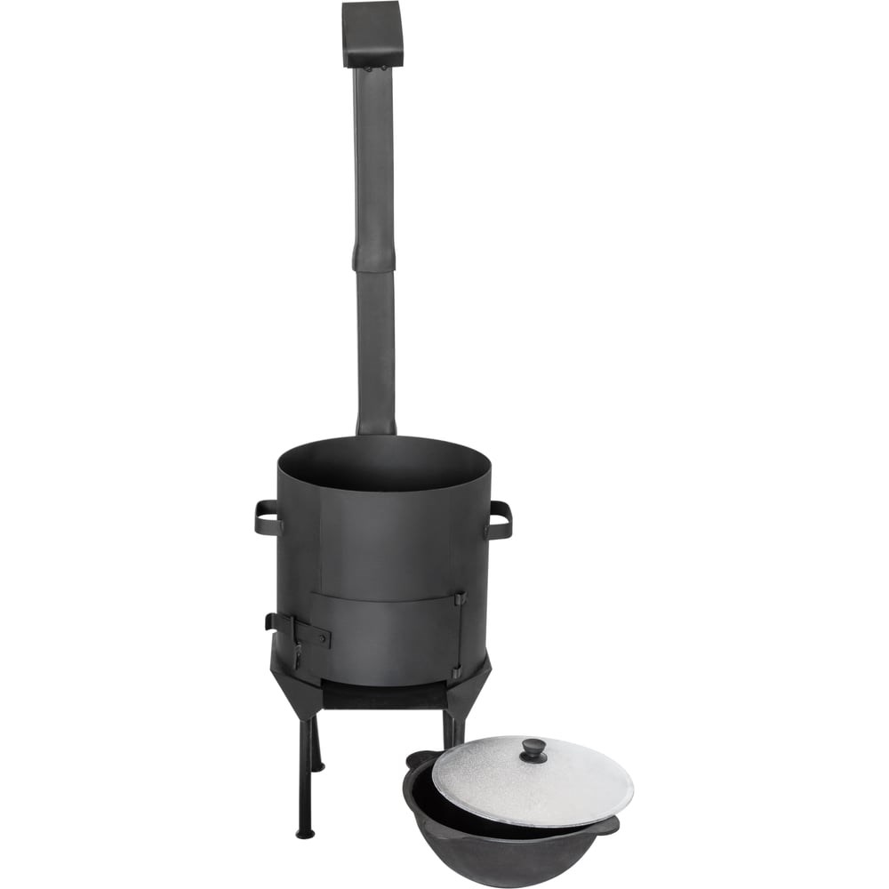 Печь для казана изготовлена из стали 2 мм. Поверхность окрашена специальной термостойкой краской. Оснащена съемной трубой из двух частей с задвижкой шибером, с помощью которого удобно регулировать тягу. Также печь под казан имеет дверцу с замком, с помощью которой можно регулировать жар или просто закрывать печь. Данная модель печи имеет 4 съемные ножки, которые вставляются в специальные пазы. Удобные ручки для переноски. Диаметр топки (см) - 45 Высота топки(см) - 33 Ширина дверцы (см) - 24 Высота дверцы (см) - 16 Высота топки с ножками(см) - 60 Высота трубы(см) - 70 Высота общая (см) - 130 Все казаны идеально отшлифованы и имеют гладкую внутреннюю поверхность. Вы покупаете толстостенный казан - толстые стенки 11 мм. и дно исключают пригорание, благодаря этому блюда будут томится в собственном соку, раскрывая все вкусы и сохраняя полезные вещества. Имеет 4 ручки-ушки, за которые его удобно переносить. Объём на 22 литра позволяют готовить любимые блюда для компании до 12-16 человек. Чугунный казан - это отличный подарок, который прослужит несколько десятилетий, но при правильном обжиге и эксплуатации.