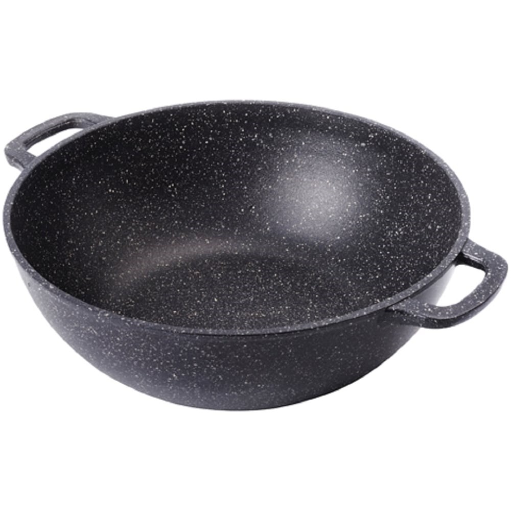 Казан Горница Гранит 280/100 мм, 4 л кн2831аг ТП8084 с антипригарным покрытием подходит для газовых, электрических и стеклокерамических плит, а также для открытого огня. Казаны с цельнолитыми ручками можно использовать в духовом шкафу. Коллекция посуды с улучшенным четырёхслойным антипригарным покрытием. Дополнительный слой с мраморным эффектом увеличивает износостойкость и создаёт оригинальный оттенок чёрного мрамора. Литой пищевой алюминий не имеет канцерогенных веществ и посторонних запахов. Толстые стенки и дно обеспечивают равномерное приготовление блюда. Посуда не деформируется при нагревании. Антипригарное покрытие на водной основе без вредных химических соединений: экологично и безопасно. Мелкие царапины не влияют на безопасность антипригарного покрытия. В казане можно готовить без масла, его легко мыть. В казане можно жарить разные продукты: мясо, овощи, грибы и т.д. А самые лучшие плов, рагу или лагман получаются только в казане.