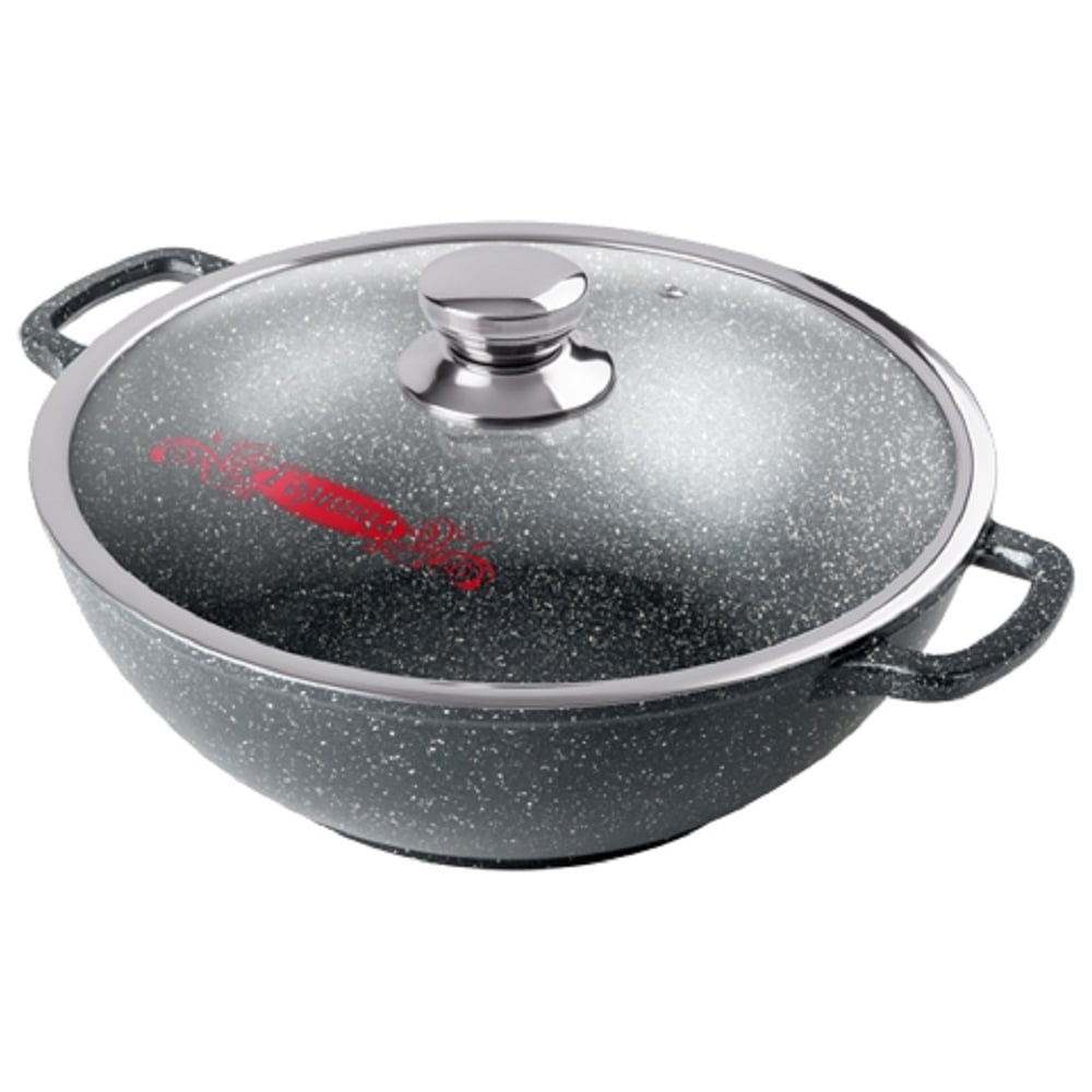 Коллекция посуды с улучшенным четырёхслойным антипригарным покрытием. Дополнительный слой с мраморным эффектом увеличивает износостойкость и создаёт оригинальный оттенок чёрного мрамора. Литой пищевой алюминий не имеет канцерогенных веществ и посторонних запахов. Толстые стенки и дно обеспечивают равномерное приготовление блюда. Посуда не деформируется при нагревании. Антипригарное покрытие на водной основе без вредных химических соединений: экологично и безопасно. Мелкие царапины не влияют на безопасность антипригарного покрытия. На сковороде можно готовить без масла, ее легко мыть.