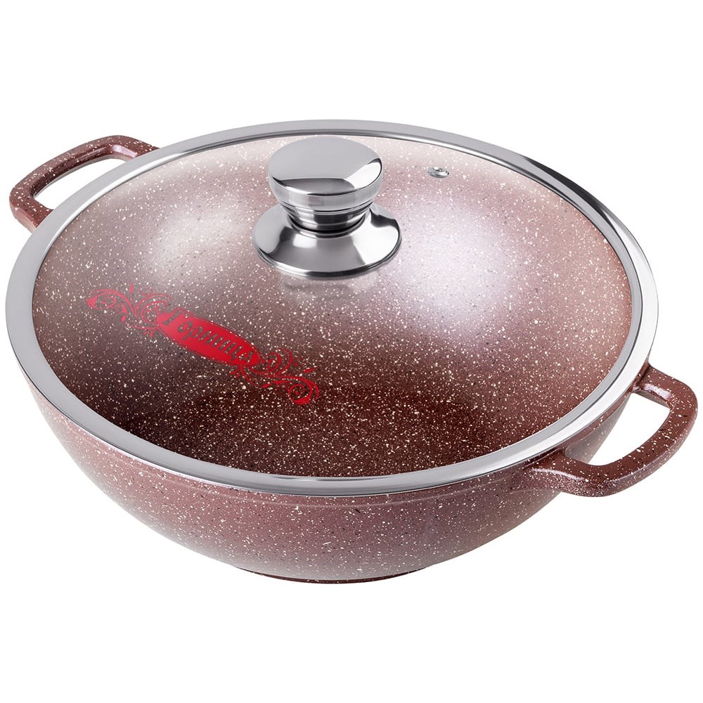 Казан Горница Шоколад 280/150 мм, 6 л, с крышкой, литая ручка кн4282аш ТП9376 с антипригарным покрытием подходит для газовых, электрических и стеклокерамических плит, а также для открытого огня. Казаны с цельнолитыми ручками можно использовать в духовом шкафу. «Шоколад» - коллекция посуды с улучшенным четырёхслойным антипригарным покрытием. Дополнительный слой с мраморным эффектом увеличивает износостойкость и создаёт оригинальный цветовой эффект мрамора шоколадного оттенка. Литой пищевой алюминий не имеет канцерогенных веществ и посторонних запахов. Толстые стенки и дно обеспечивают равномерное приготовление блюда.