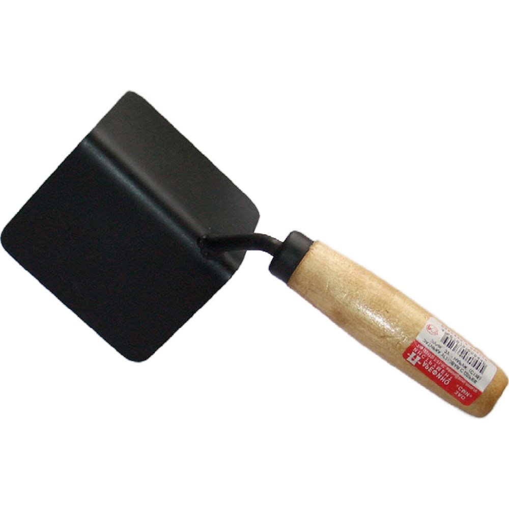 Кельма для внешних углов – штукатурно-отделочный инструмент профессионального класса, целевое предназначение которого – изготовление откосов и внешних углов стеновых соединений при помощи строительных цементных, известковых или гипсовых растворов. Полотно кельмы изготовлено из качественной стали с оксидированным покрытием. Эргономичная деревянная рукоять обеспечивает комфортное использование.