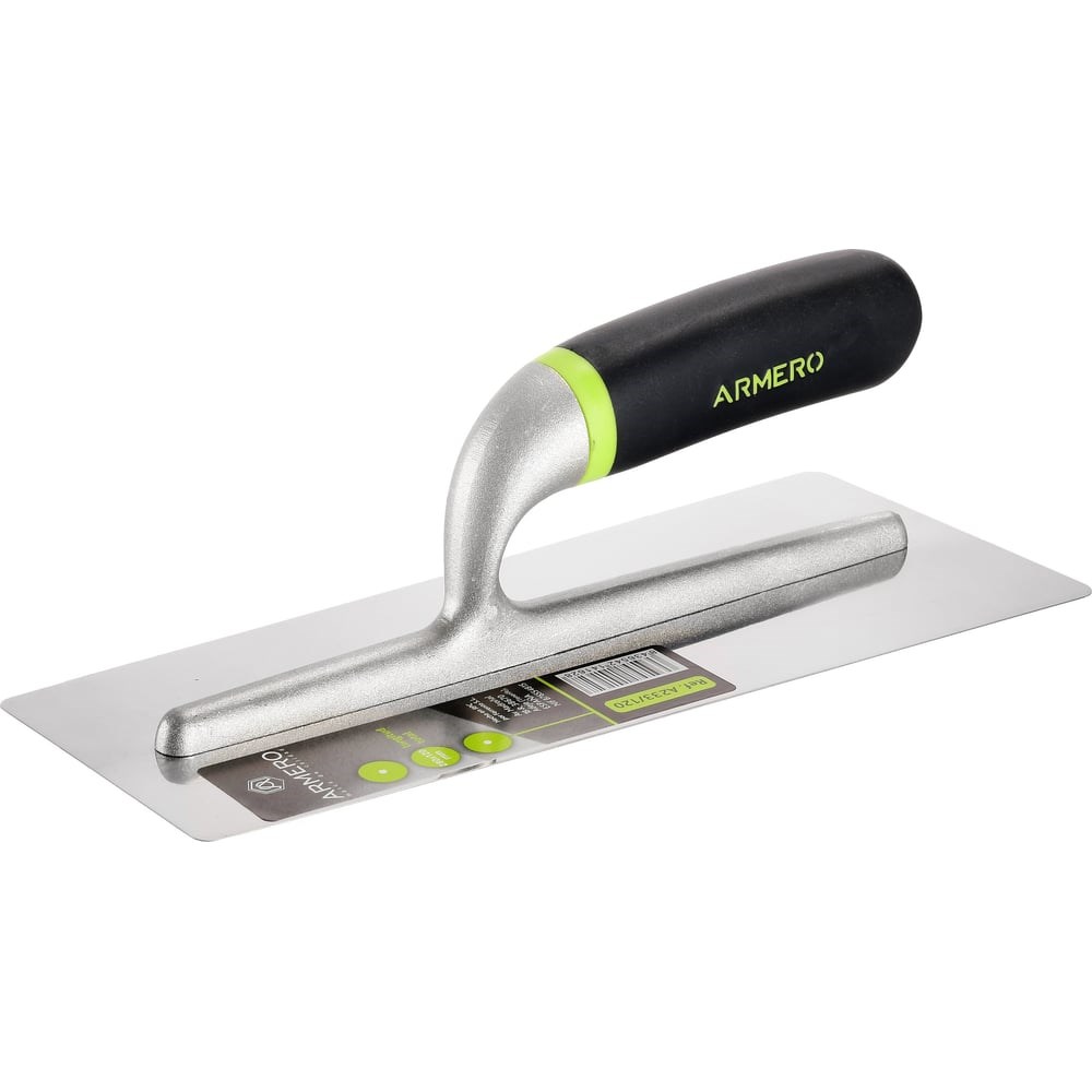 Кельма для венецианской штукатурки Armero 280х120 мм A233/120 используется в отделочных и строительных работах для нанесения и разравнивания раствора декоративной штукатурки на поверхностьМягкая рукоятка не скользит в руке при работе. Лезвие длиной лезвия 280 мм, шириной лезвия 120 и толщиной 0.7 мм выполнено из нержавеющей стали с зеркальной полировкой и имеет скругленные углы и легированный хвостовик, благодаря чему инструмент прослужит долгое время.