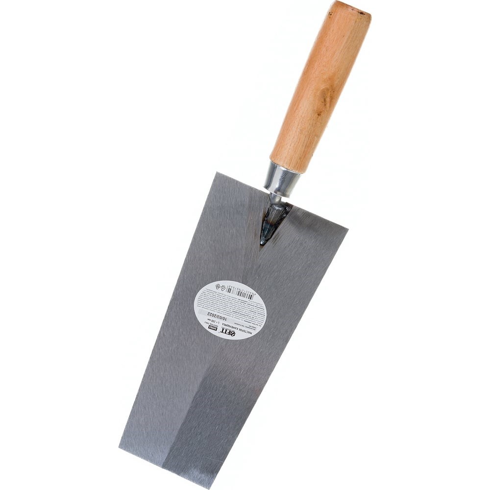 Мастерок каменщика трапеция, 200 мм FIT IT 04984 служит в качестве инструмента для кладки камня и нанесения строительных смесей на рабочую поверхность. Полотно в форме трапеции изготовлено из инструментальной стали. Деревянная рукоять обеспечивает комфортную работу.