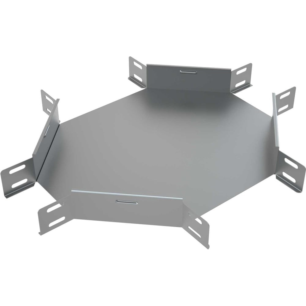 Создавать кабеленесущие конструкции любой степени сложности позволяет конструктив х-разветвителя для металлического листового лотка БАЗОВОЙ СЕРИИ.Фасонная секция применяется для ответвления кабельной трассы при монтаже одновременно во все стороны.Подходит для соединения c металлическим листовым лотком этой же серии шириной 300 мм и высотой борта 50 мм.Изделие выполнено из стали и оцинковано по методу Сендзимира.Предназначено для применения в местах предпочтительно с сухим климатом, внутри помещений и в слабоагрессивных средах, в соответствии с ГОСТ15150-69.Специальные соединительные лепестки на корпусе секции обеспечивают необходимую жесткость конструкции стыкового узла и целостность трассы.Для дополнительной защиты элемента кабельной трассы от механических повреждений используйте крышку.