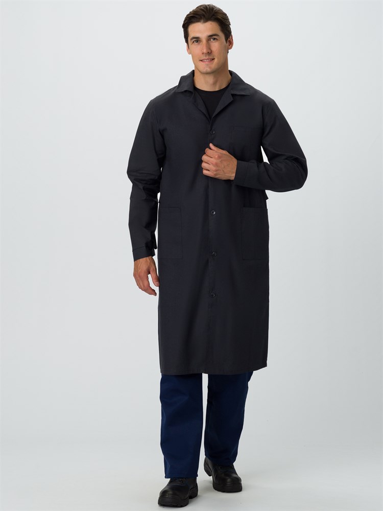 ХАЛАТ: - длина ниже колена - центральная застежка на петли и пуговицы - отложной воротник - регулировка объема по талии поясом - нагрудный карман с открытым входом - нижние карманы с открытым входом - манжеты на пуговице"