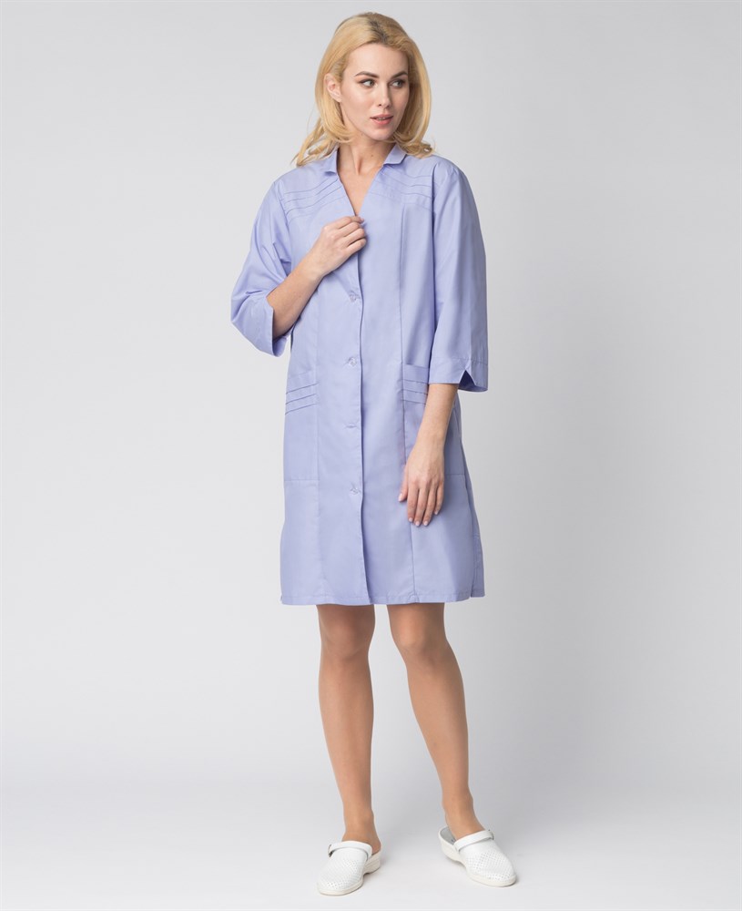 Халат рабочий женский «Лира» отличается замечательным качеством исполнения и стильным внешним видом. Медицинский халат изготовлен в соответствии с ГОСТ, надежно защищает от общих производственных загрязнений и прекрасно подходит для работы в салонах красоты, медицинских учреждениях, массажных салонах и стоматологиях. Благодаря воротнику-стойке и декоративной отделке карманов и кокетки женская спецодежда выглядит элегантно и женственно. Короткий женский халат полуприлегающего силуэта великолепно сидит по фигуре, подчеркивает линию талии. Удобные боковые карманы предназначены для хранения нужных записей и расходников. Плотная ткань рабочей одежды устойчива к многократным стиркам, отлично сохраняет форму. С помощью центральной застежки халат легко надевать, а рукава 3/4 не мешают работе.