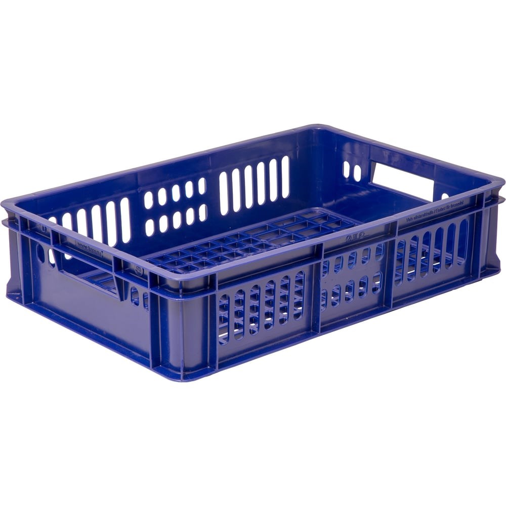 Хлебный ящик п/э 600х400х150 с перфорацией синий Тара.ру 15657 обладает небольшими размерами и весом. За счет дополнительных ребер жесткости увеличена прочность и грузоподъемность.Есть две рукоятки, которые упрощают транспортировку.