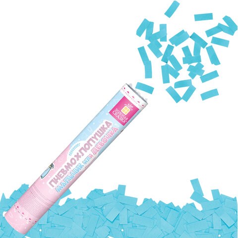 Хлопушка пневматическая 30 см, "Мальчик или девочка", бумага, голубой цвет, ЗОЛОТАЯ СКАЗКА, 592457