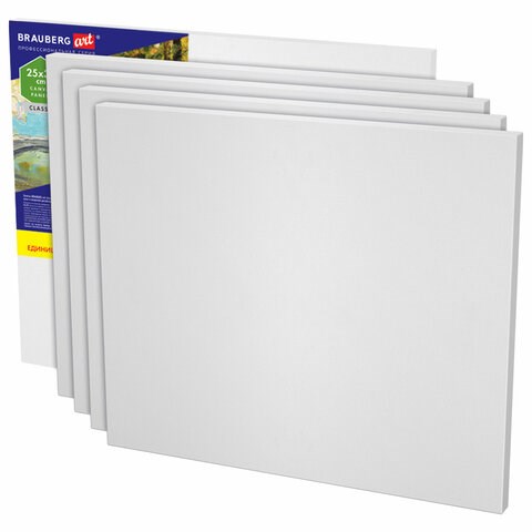 Холсты на картоне НАБОР 5 шт. (25х30 см), 280 г/м2, грунт, 100% хлопок, BRAUBERG ART CLASSIC, 192504