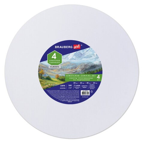 Холсты на подрамнике 4 шт., круглые 20, 30, 40, 50 см, грунтованные, 380 г/м2, 100% хлопок, BRAUBERG ART, 192331