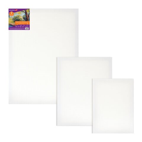 Холсты на подрамнике НАБОР 3 шт. (30х40 см, 40х50 см, 50х70 см), 280 г/м2, грунт, хлопок, BRAUBERG ART, 192270