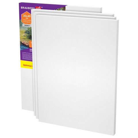 Холсты на подрамнике в коробе НАБОР 4 шт. (30х40 см), 280 г/м2, грунт, 100% хлопок, BRAUBERG ART DEBUT, 192511