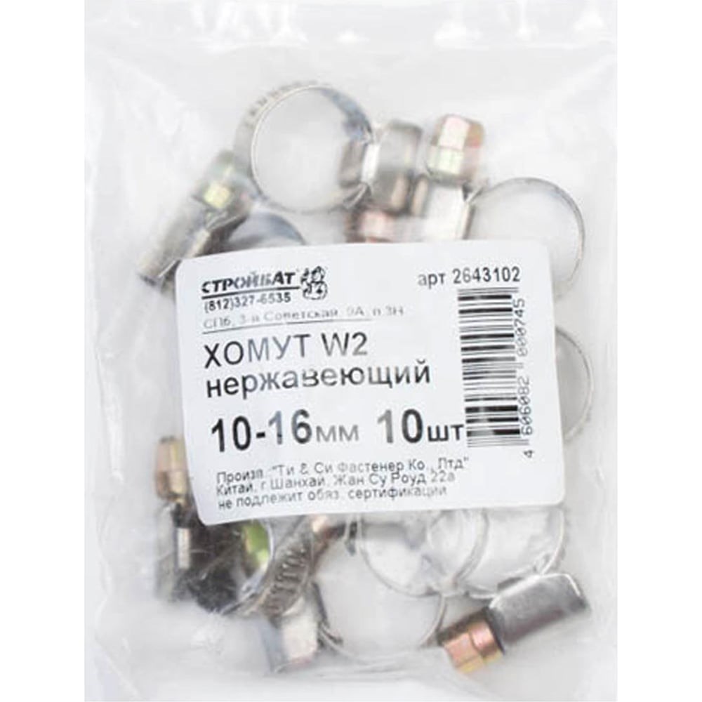 Хомут Стройбат нержавеющая сталь, W2, 10-16 мм, 10 шт. 323880