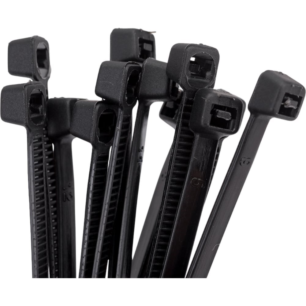 В упаковке: 100 шт Размер: 150х3,6мм Материал: нейлон Цвет: черный Упаковка: п/э пакет с подвесом, ч/б стикер Изделие используется для создания связок проводов, фиксации различных изделий. Хомуты могут использоваться как в закрытых помещениях, так и на открытых площадках в качестве временного крепления.