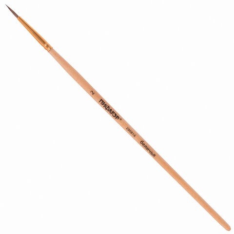 Кисть ПИФАГОР, БЕЛКА, круглая, № 2, деревянная лакированная ручка, с колпачком, 200816