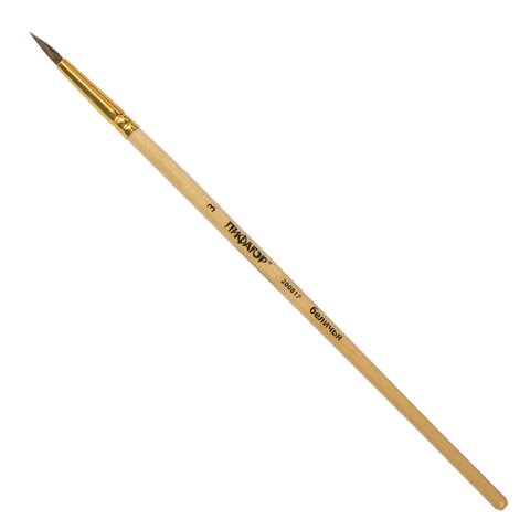 Кисть из волоса белки отлично впитывает и отдает краску, хорошо держит форму, долговечна и надежна. Кисть № 3 позволит прорисовывать мелкие детали. Деревянную лакированную рукоятку кисти удобно держать в руке.