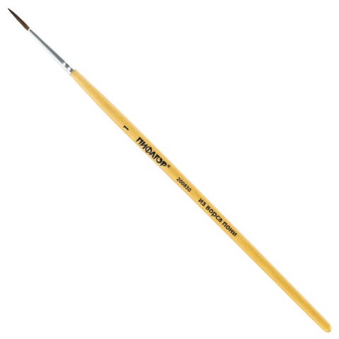 Кисть ПИФАГОР, ПОНИ, круглая, № 1, деревянная лакированная ручка, с колпачком, 200830