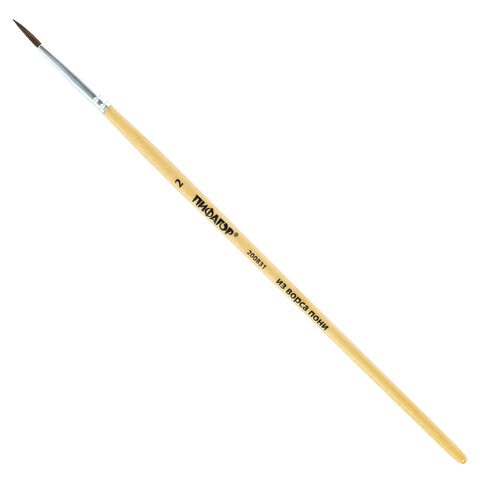 Кисть ПИФАГОР, ПОНИ, круглая, № 2, деревянная лакированная ручка, с колпачком, 200831