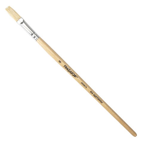 Кисть ПИФАГОР, ЩЕТИНА, плоская, № 8, деревянная лакированная ручка, пакет с подвесом, 200873