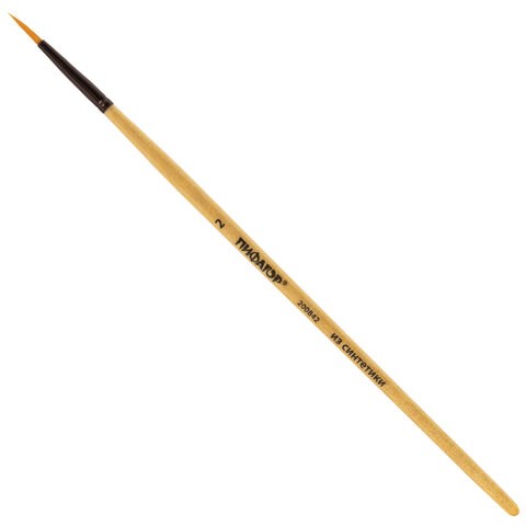 Кисть из синтетического ворса эластичная, не распадается, хорошо держит форму, долговечна и надежна. Кисть № 2 позволит прорисовывать мелкие детали. Деревянную лакированную рукоятку кисти удобно держать в руке.