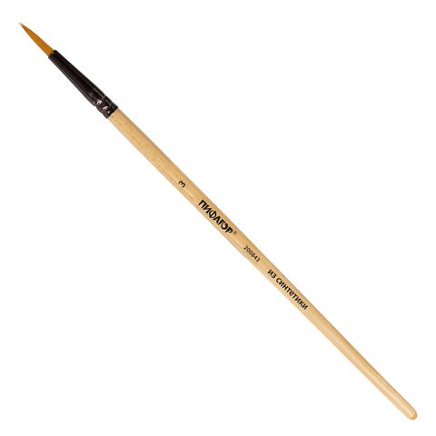 Кисть ПИФАГОР, СИНТЕТИКА, круглая, № 3, деревянная лакированная ручка, с колпачком, 200843