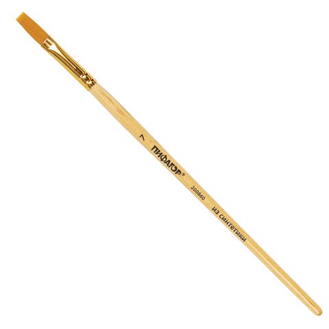 Кисть ПИФАГОР, СИНТЕТИКА, плоская, № 7, деревянная лакированная ручка, с колпачком, пакет с подвесом, 200860