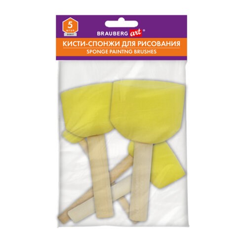 Кисть-спонж для рисования художественный, набор 5 штук, BRAUBERG ART DEBUT, 201089