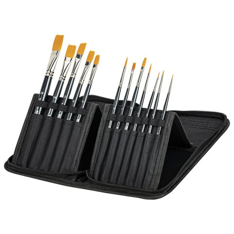 Кисти художественные набор 12 шт. в черном пенале, синтетика, BRAUBERG ART CLASSIC, № 0-20, 200967