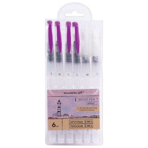 Кисти художественные с резервуаром для воды, синтетика, набор 6 шт., BRAUBERG ART DEBUT, 200965